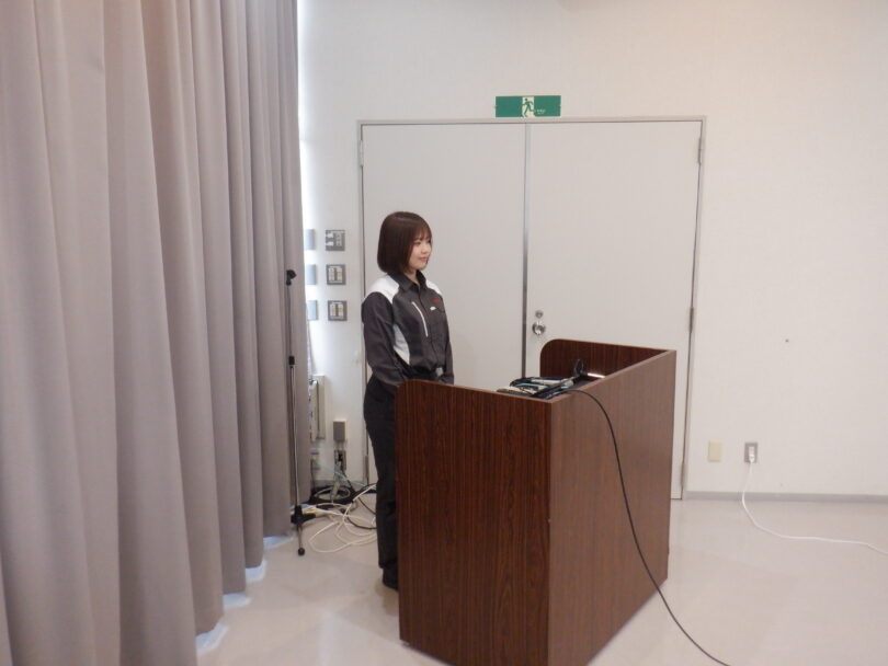 今年の入社式の司会は、入社2年目の総務課員が初めて担当しました。