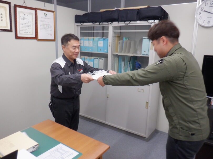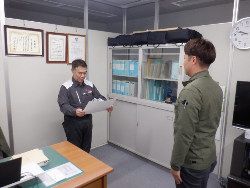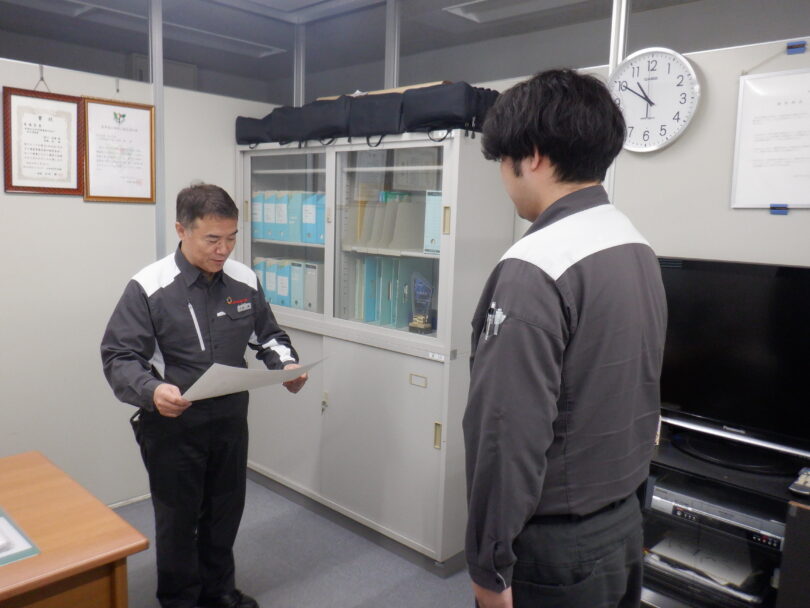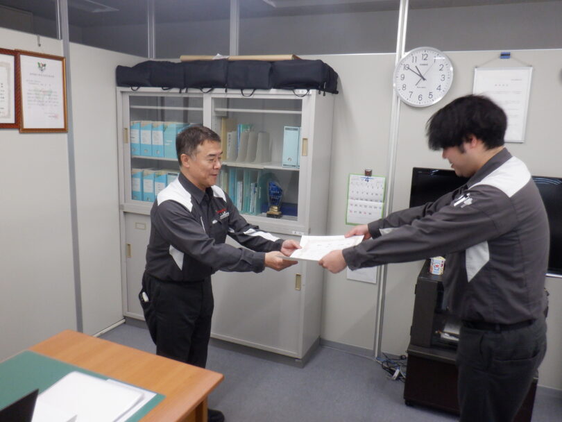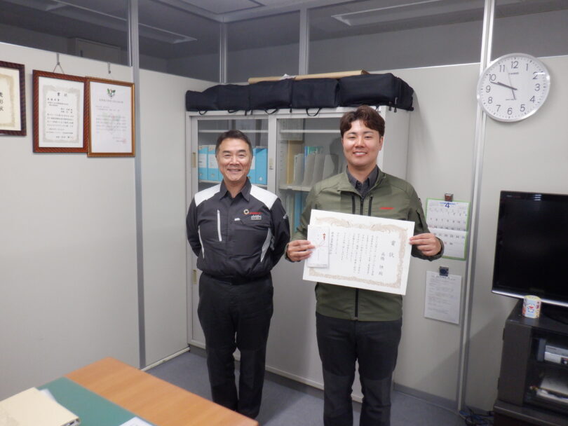 2026年1月29日に行われた、「第22回 石油・石油ガス備蓄業務改善活動発表会」において、当社として初めての最優秀賞を受賞し、またその発表において多大な貢献をした2名の当社社員に、社長表彰として社内表彰を行ないました。