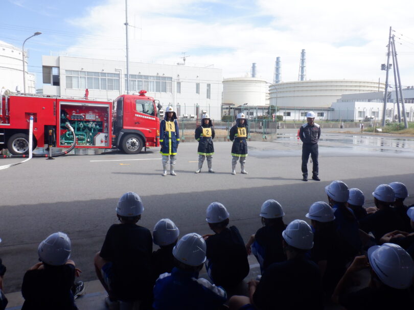この度、当社が保守管理業務を行っている新潟石油共同備蓄株式会社様の東基地に、聖籠中学校1年生のみなさんが会社見学に来られました。